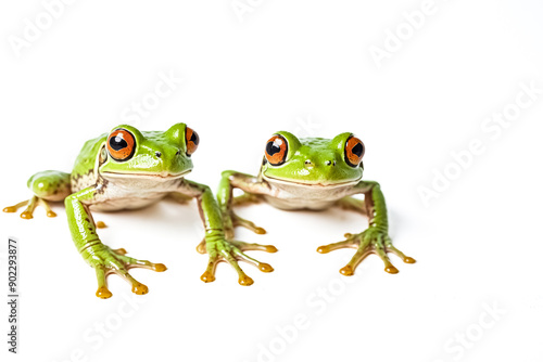 © Rysak, Obraz premium Two green tree frogs on white background