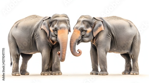 © wannathon, Obraz premium Two Grey Asian Elephants Standing Side By Side Isolated on White Background Wildlife Mammals