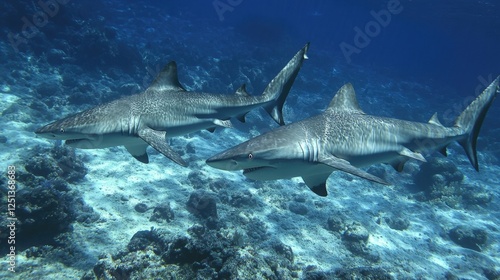 © nangruthai, Fototapeta premium Two Grey Reef Sharks Swimming in Ocean