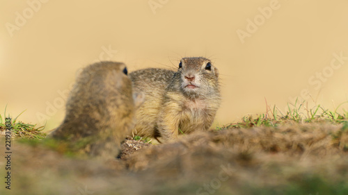 © denisapro, Fototapeta premium Two ground squirrels in grass with blurry background