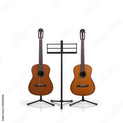 © salek, Naklejka premium Two guitars with music stand isolated on white background