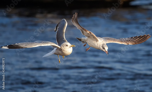 © Svetliy, Fototapeta premium Two gulls fight over the water