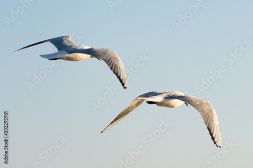 Obraz premium two gulls fly into the distance