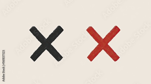 Obraz premium Two hand-drawn 'X' marks; black and red.