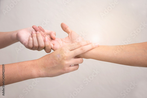 Fototapeta premium Two hand in sunshire hold together ,for take care story.