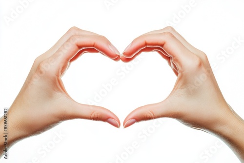 Fototapeta premium Two Hands Forming a Heart Shape Together on a Pure White Background for Love...