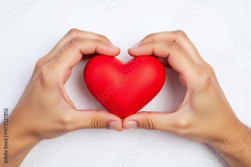 © Ease Enjoy, Fototapeta premium two hands holding a red heart on a white background