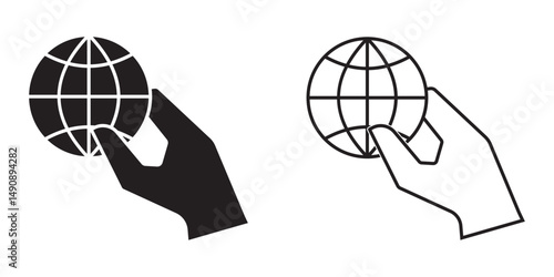 Fototapeta premium Two hands holding globe line icon for web, mobile and infographics. Hand...