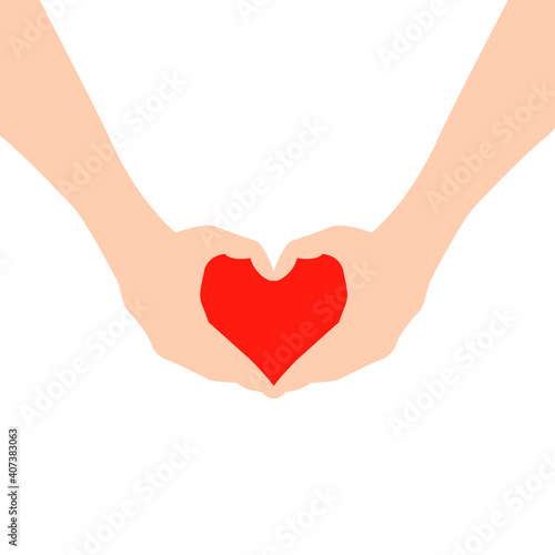 © Lioner, Obraz premium Two hands making heart sign. Love, romantic relationship concept. Isolated vector illustration flat style.