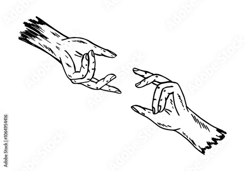 © Muse Stock, Obraz premium Two hands reaching out to each other, drawing cartoon doodle vector.