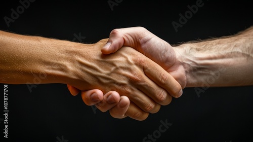 Fototapeta premium Two hands shaking, a gesture of agreement or partnership.