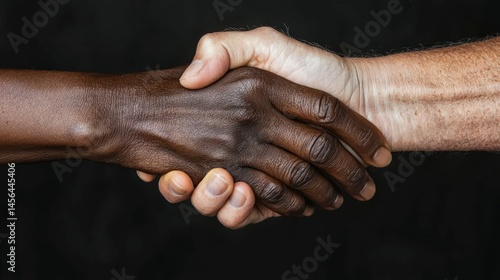Fototapeta premium Two hands shaking, showing interracial friendship and collaboration