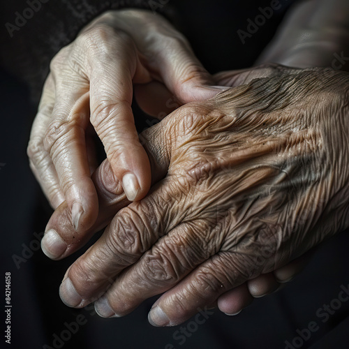 © Avelino, Fototapeta premium Two hands touch showing age and experience. Generated by AI