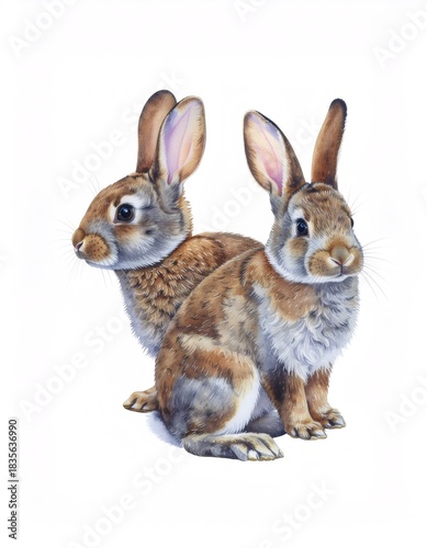 © Анна Мальшакова, Obraz premium Two headed rabbit on white background symbolizing genetic mutation and surreal animal fantasy