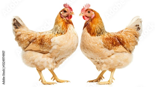 © Photo Dogg, Fototapeta premium Two Healthy Brown Hens Isolated on White Background