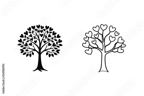 Obraz premium Two Heart Shaped Leaf Trees Love, Nature, Romance, Design, Illustration