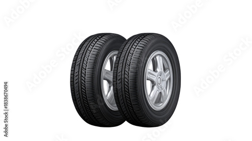 © boonma, Obraz premium Two High-Quality Car Tires with Alloy Rims Isolated on a White Background