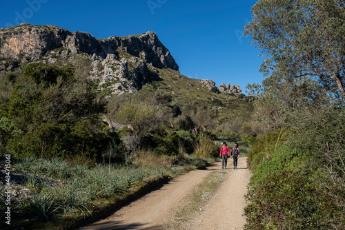 Obraz premium two hikers walking along the Assarell path, Pollença, Mallorca, Balearic...