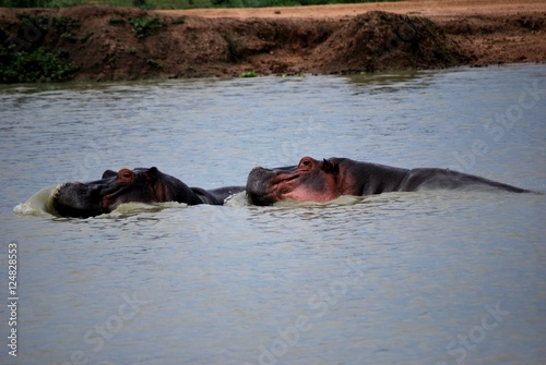 © Demande Philippe, Fototapeta premium Two hippopotamuses in the water
