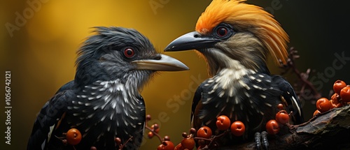© GenerativeAIpicture, Fototapeta premium Two Hornbills in Love Amidst Nature's Beauty