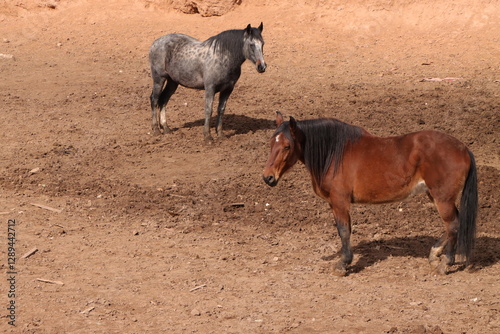 © Iana Andrushchenko, Obraz premium Two horses in a spacious pasture