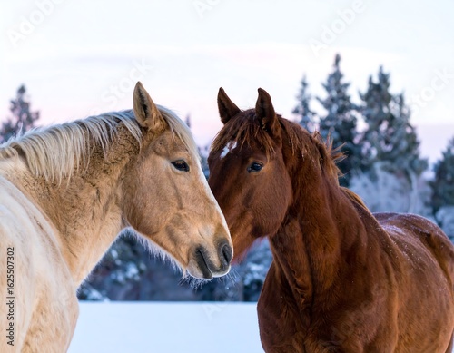 © Ranii, Fototapeta premium Two horses in winter scene