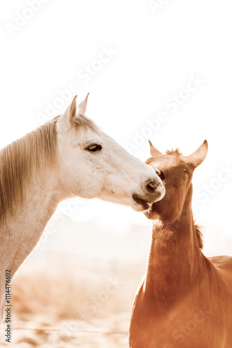 Fototapeta premium two horses playing play having fun happy