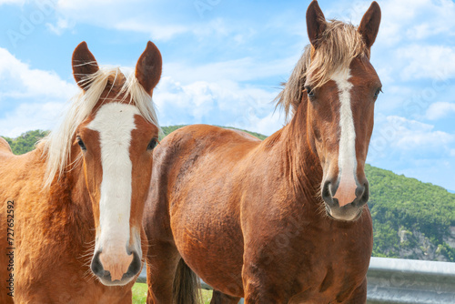 © Brian Scantlebury, Obraz premium Two horses together on mountain road in Umbria
