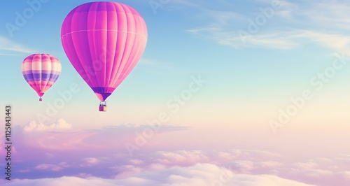 © Sofia, Naklejka premium two hot air balloons fly high above the clouds