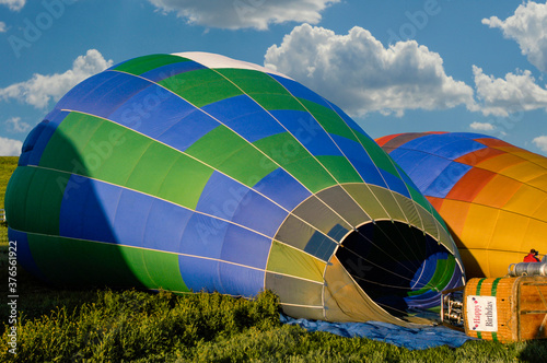 © Guntherize, Obraz premium Two hot air balloons on the ground and getting filled to fly