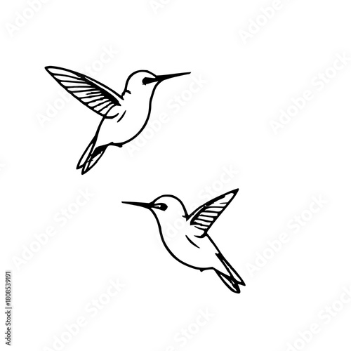 © Rana, Naklejka premium Two Hummingbird Icons: Stylized Black Silhouettes