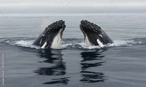 © pec, Fototapeta premium Two Humpback Whales Surface in Dark Ocean Water