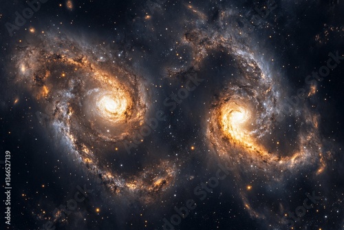 © photopixelstudio, Obraz premium Two interacting spiral galaxies in deep space