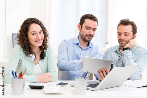 Fototapeta premium Two interns working together assisted by their course supervisor