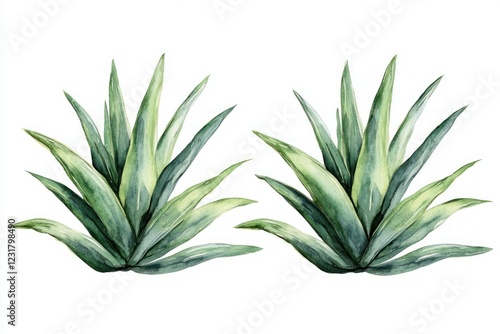 Fototapeta premium Two isolated green succulent plants on white background for decoration or botanical art
