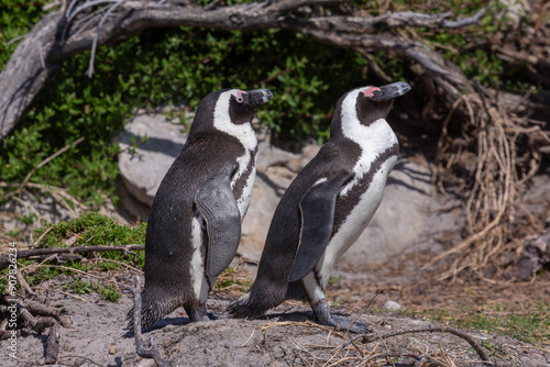 Naklejka premium Two Jackass Penguins in Betty's Bay in the Western Cape of South Africa