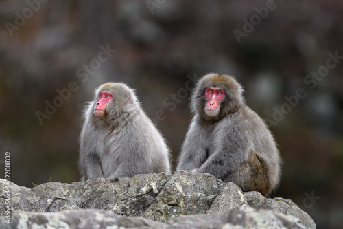 © Godimus Michel, Naklejka premium two Japanese snow monkey portrait during fall