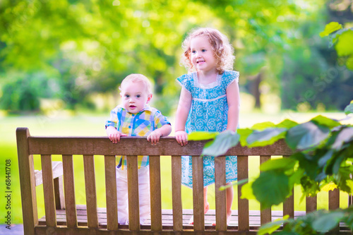 Fototapeta premium Two kids on a park bench