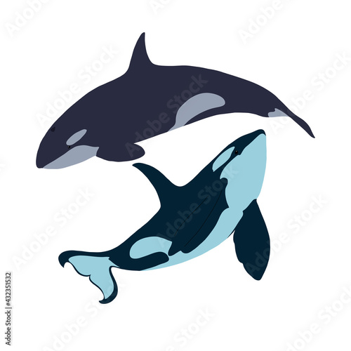 Obraz premium Two killer whales. Vector illustration.
