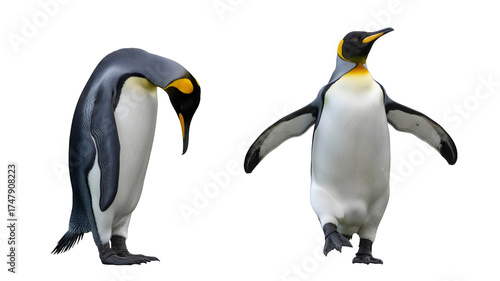 Fototapeta premium Two king penguins standing side by side isolated on transparent background