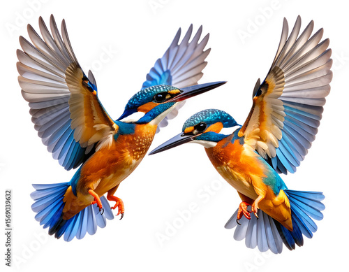 © MdNazmul, Obraz premium Two Kingfishers in Flight – Mid-Air Motion