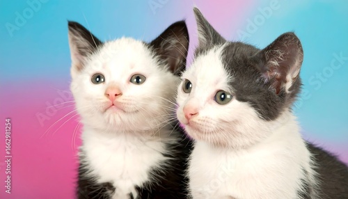 © telo, Fototapeta premium Two Kittens Pose Against Colorful Background