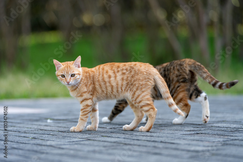 Obraz premium Two kittens walking in the park
