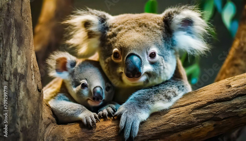 © hanohiki, Obraz premium two koala bears on tree .ai generated