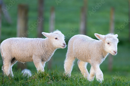 © Stefan, Fototapeta premium Two lambs in a field on the farm