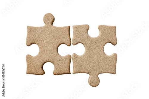© Nad, Fototapeta premium Two light beige puzzle pieces, closely joined, on a black background