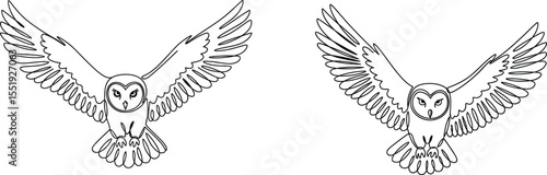 Obraz premium Two Line Art Owls in Flight, Illustration, Bird Outline Drawing