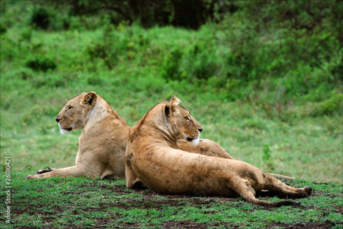 © Uryadnikov Sergey, Naklejka premium Two lionesses.