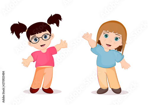 © bleskk, Fototapeta premium Two little girls. Vector graphics. Eps