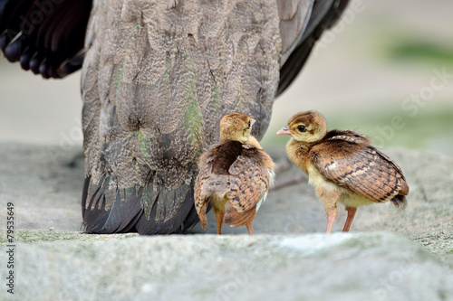 Fototapeta premium Two little peacock following their mother